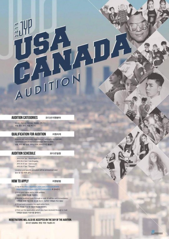 JYP엔터테인먼트가 오는 2일 글로벌 오디션 ‘2015 미국&캐나다 오디션(USA&CANADA AUDITION)’을 개최한다.