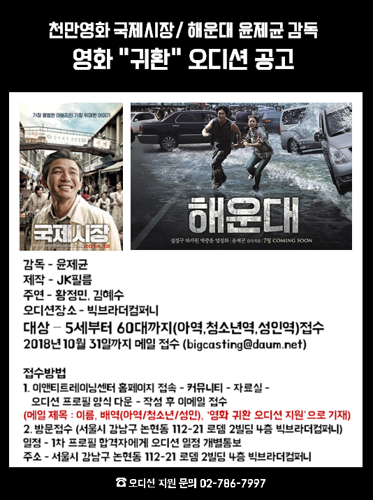 국제시장/해운대 윤제균 감독 영화 '귀환' 오디션 공고